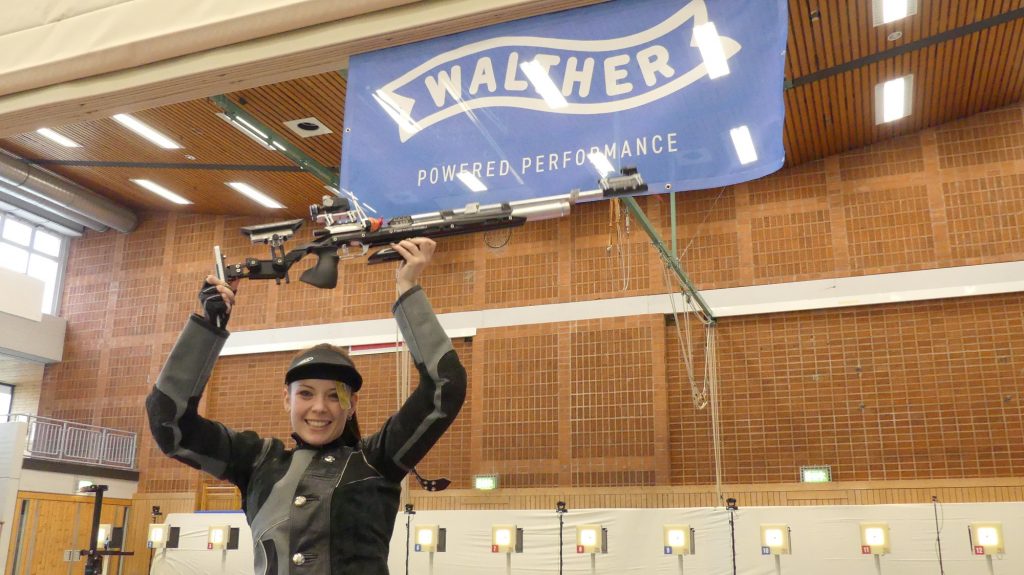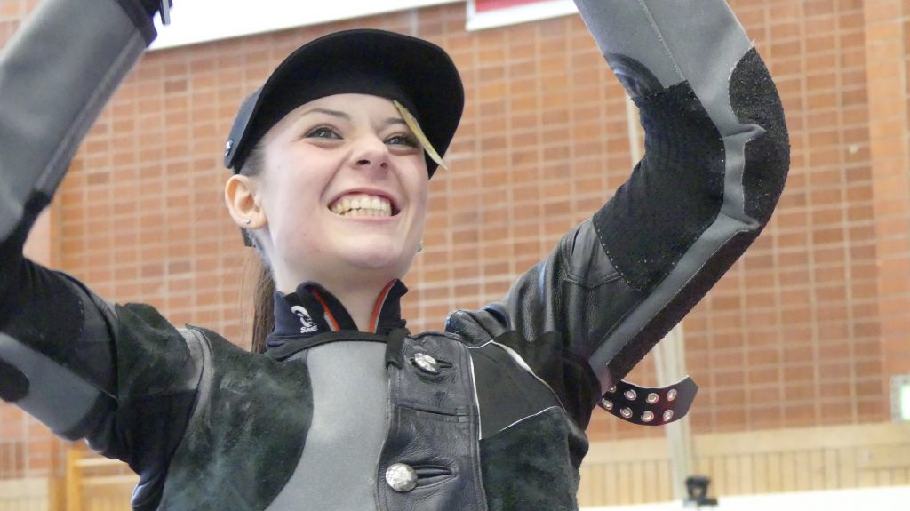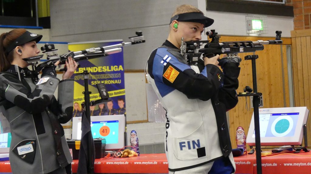 Vor dieser Abendbegegnung marschierten die Kronauer umrahmt von einer Lasershow und begleitet vom Applaus der zahlreichen Zuschauer in die Halle ein. Die beiden Mannschaften begannen ausgeglichen und die erste Hochrechnung zeigte ein Unentschieden. Nach 20 Minuten und ca. 20 Wertungsschüssen war die Begegnung immer noch ausgeglichen. Die „Schnellschützin“ Annabelle Lotter war zu diesem Zeitpunkt schon fertig und legte ihrer Gegnerin, die gerade mal elf Schüsse absolviert hatte, 397 Ringe vor. Kurz danach war der SSV Kronau zum ersten Mal leicht im Vorteil. Jedoch wurde es zwischen Lana Wurster und dem Finnen Leppa auf der Seite von Fenken immer enger. Die Kronauer Punkte durch Larissa Wegner und Annabell Lotter schienen bereits sicher, aber auch die Punkte durch Max Braun und Nele Stark waren noch in Reichweite. Nachdem Larissa Wegner mit dem 32. Schuss eine Neun schoss wurde es auf Position 1 nochmals spannend. Sie blieb jedoch sicher und gewann ihr Match mit 398 Ringen und einem Ring Vorsprung. Nach 25 Schüssen von Lana Wurster sprang die Hochrechnung auf der Anzeigentafel zu ihren Gunsten um. Diesen leichten Vorteil konnte sie mit 100 Ringen in der dritten Serie festigen. Zu diesem Zeitpunkt zeigte die Hochrechnung ein 3:1 für Kronau. Doch Max Braun, der vor seinen letzten zehn Schüssen noch als klarer Sieger aussah, konnte dem Endspurt seiner Gegnerin nicht folgen und verlor seinen Einzelpunkt knapp mit einem Ring Rückstand. Da auch Nelle Stark ihr Match verlor, war die Begegnung wieder ausgeglichen. Da Lana Wurster mit dem 31. und 34. Schuss je eine Neun schoss, zeigte die Hochrechnung eine Kronauer Niederlage mit 3:2 an. Jetzt bestand die einzige Chance, die Begegnung noch zu Gunsten von Kronau zu entscheiden darin, dass Lana Wurster mit sechs Zehnern ausschießen musste, um dadurch ein Stechen zu erzwingen. Das war ihr bewußt und alle Blicke waren auf sie gerichtet. Sie ließ sich Zeit und setzte bei jedem Schuss mehrmals ab, was natürlich die Spannung erhöhte. Beim letzten Schuss zeigte die Uhr nur noch 90 Sekunden Schießzeit an. Trotz dieser Anspannung setzte sie nochmals ab. Jetzt musste der Schuss fallen und sie schoss nervenstark eine 10,0. Die Freude und der Jubel bei den Fans war groß. Lana Wurster blieb jedoch ruhig, galt es doch jetzt, den Stechschuss zum Sieg für ihre Mannschaft zu verwandeln. Bereits nach dem ersten Stechen war Lana Wurster die umjubelte Schützin, da sie es gegen Aleksi Leppa mit 10:9 gewann und dem SSV Kronau einen glücklichen 3:2 Sieg bescherte.