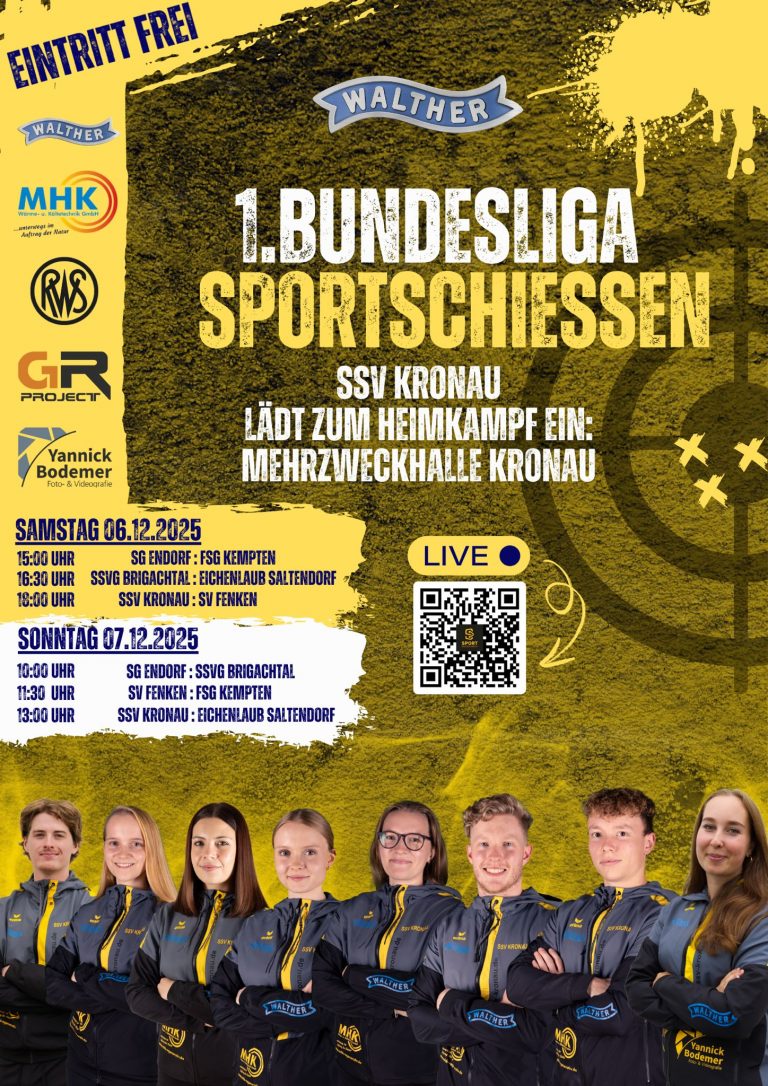 der Sportschützenverein Kronau 1926 e.V. lädt Euch hiermit herzlich zu den Wettkämpfen der 1. Bundesliga Luftgewehr ein, die wir