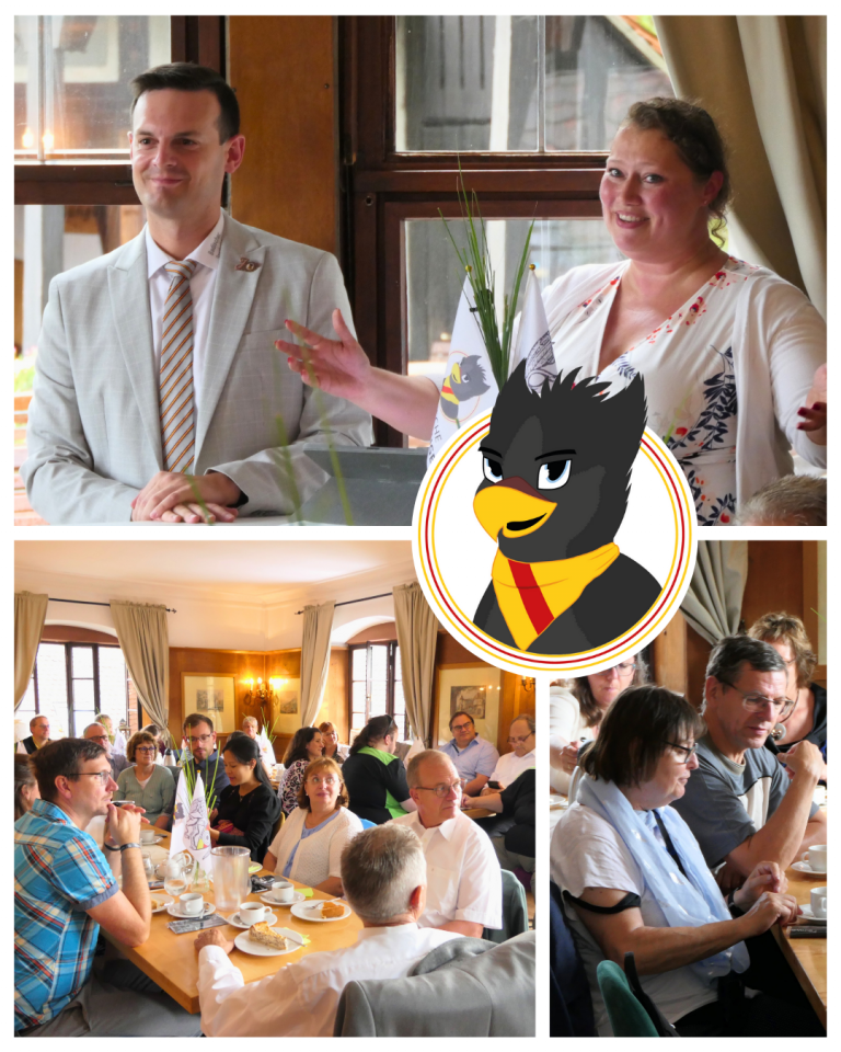 Der Tag begann standesgemäß mit Kaffee und Kuchen – kalorienfrei, denn: „Im Dienst des Ehrenamts zählt das nicht!“, wie Dominic betonte. Nach einer herzlichen Begrüßung – samt humorvollem Gruß an Ehrenpräsident Roland Wittmer, der aufgrund eines kurzfristigen Handwerkerbesuch leider fehlte – ging es weiter zur Flugschau der Deutschen Greifenwarte.